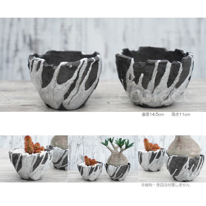 セメント鉢 植木鉢 ミニポット 底穴あり 皿付 クリフL φ17cm おしゃれ かわいい プランター 園芸鉢 観葉植物 アガベ サボテン ビザールプランツ 塊根植物 コーデックス 多肉植物
