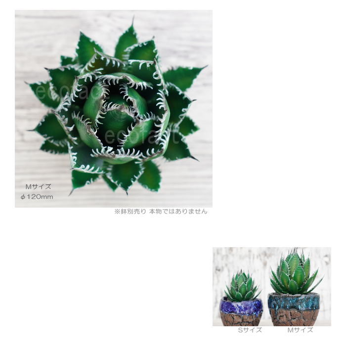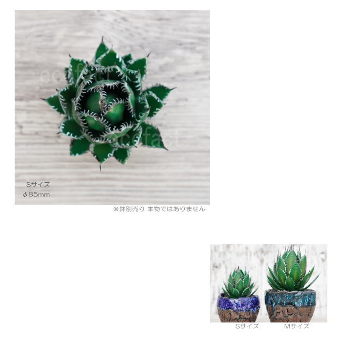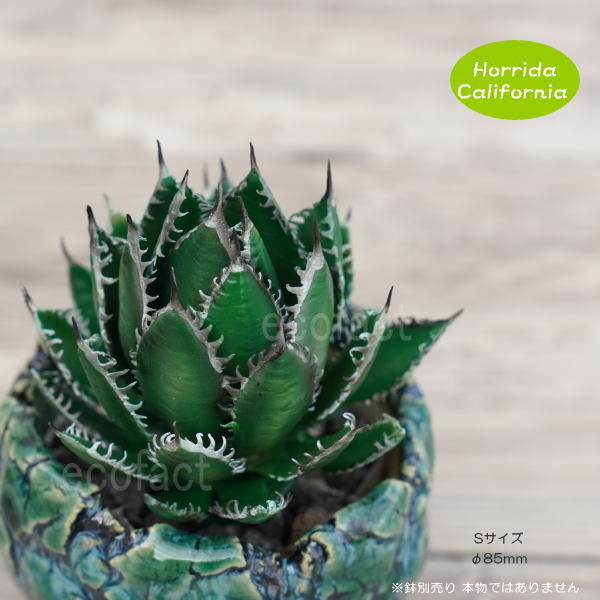 カリフォルニア産のスペシャルなホリダを3Dプリンターでフィギュア化。ホリダ カリフォルニアは 希少な品種で鑑賞用に高価な植物のひとつ。難易度の高い仕上がりで 通常のホリダに比べ葉の枚数が多くワイド気味で 鋸歯が細かく鋭いのが特徴で形の整った個体を再現しています。アガベ ホリダ カリフォルニア フィギュアは 少数生産のハンドメイドのお品でクリエーターによるリアルな彩色が評判です。撮影では鉢と合わせ見栄えをよくしていますが 壊れやすいので専用ケースでの保管をお勧めします。