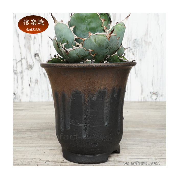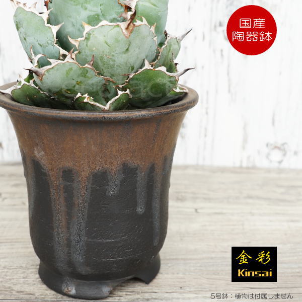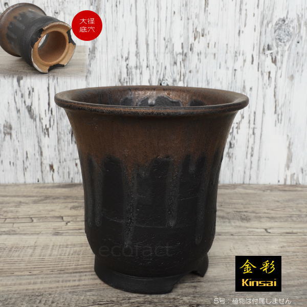陶器鉢 植木鉢 底穴あり 5号高脚スリム 金彩 ブラック おしゃれ プランター 園芸鉢 信楽焼 かみ山陶器 観葉植物 アガベ サボテン ビザールプランツ 塊根植物 コーデックス 多肉植物 ポット
