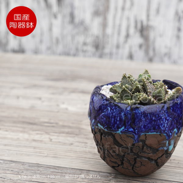 陶器鉢 植木鉢 ミニポット 底穴あり オーシャン(ブルー) 濃茶 S φ8cm 日本製 手作り おしゃれ かわいい プランター 園芸鉢 観葉植物 アガベ サボテン ビザールプランツ 塊根植物 コーデックス 多肉植物 ふるものぐりーん8889工房