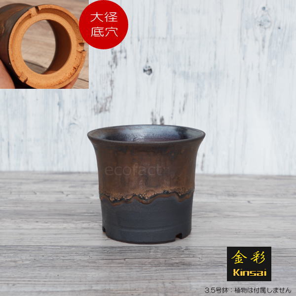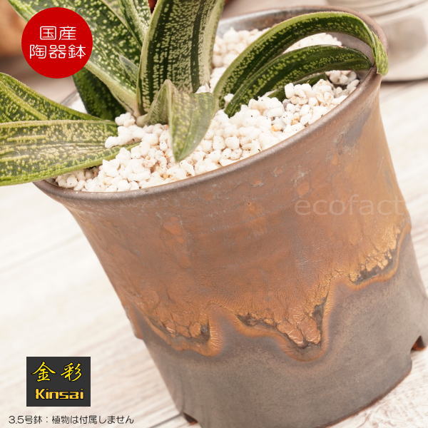 陶器鉢 植木鉢 3.5号 ラッパ型 金彩 ゴールド/ブラック おしゃれ プランター 園芸鉢 かみ山陶器 信楽焼 観葉植物 アガベ サボテン ビザールプランツ 塊根植物 コーデックス 多肉植物 ポット