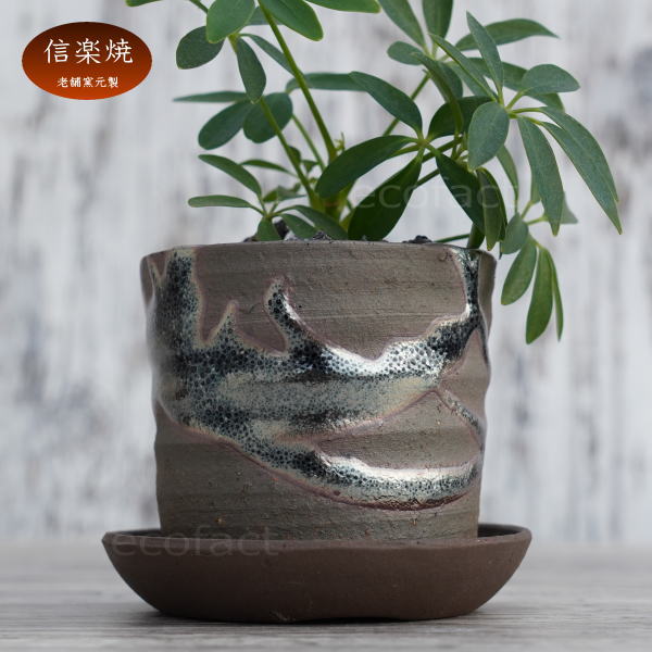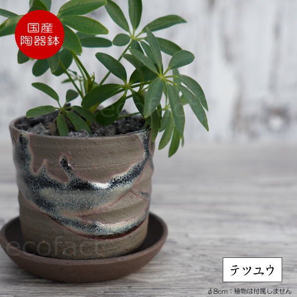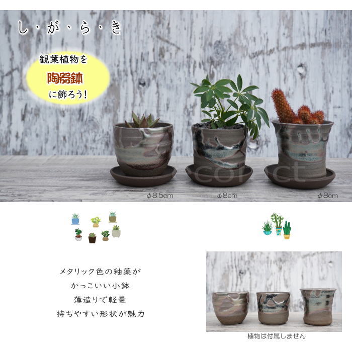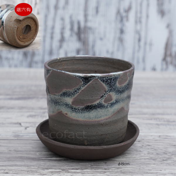 陶器鉢 植木鉢 小鉢 底穴あり 鉄釉縦型(ガンメタ)φ8cm 受皿付き おしゃれ プランター 園芸鉢 信楽焼(しがらきやき)かみ山陶器 コーデックス 塊根植物