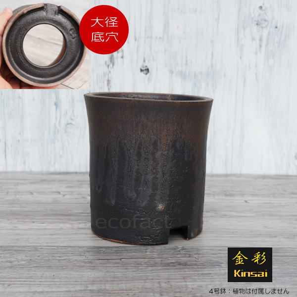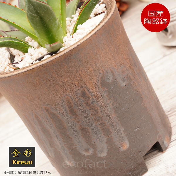 陶器鉢 植木鉢 4号 筒型 金彩 ゴールド/ブラック おしゃれ プランター 園芸鉢 かみ山陶器 信楽焼 観葉植物 アガベ サボテン ビザールプランツ 塊根植物 コーデックス 多肉植物 ポット